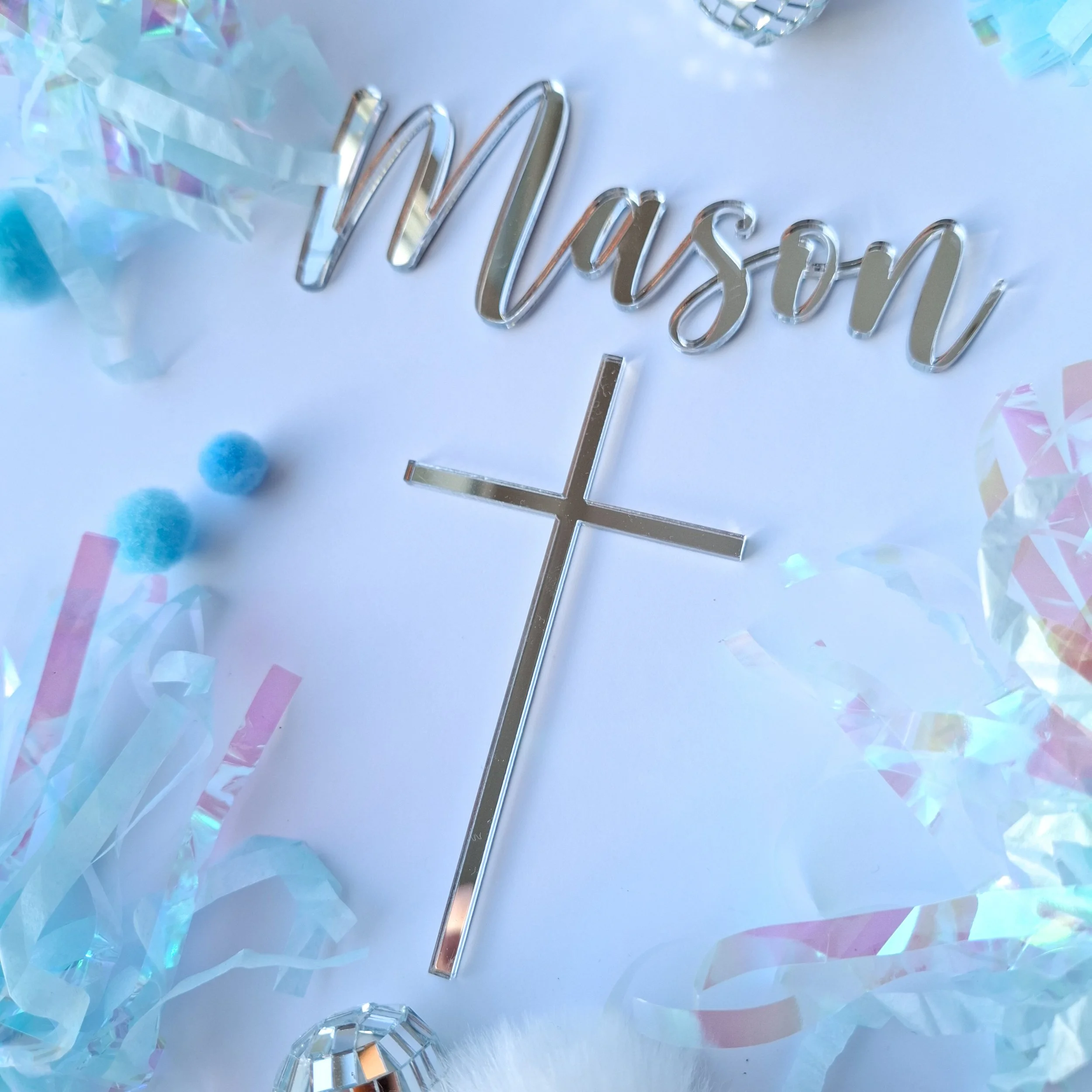Personalised Acrylic Name Charm & Cross Charm | Cake Topper Charm