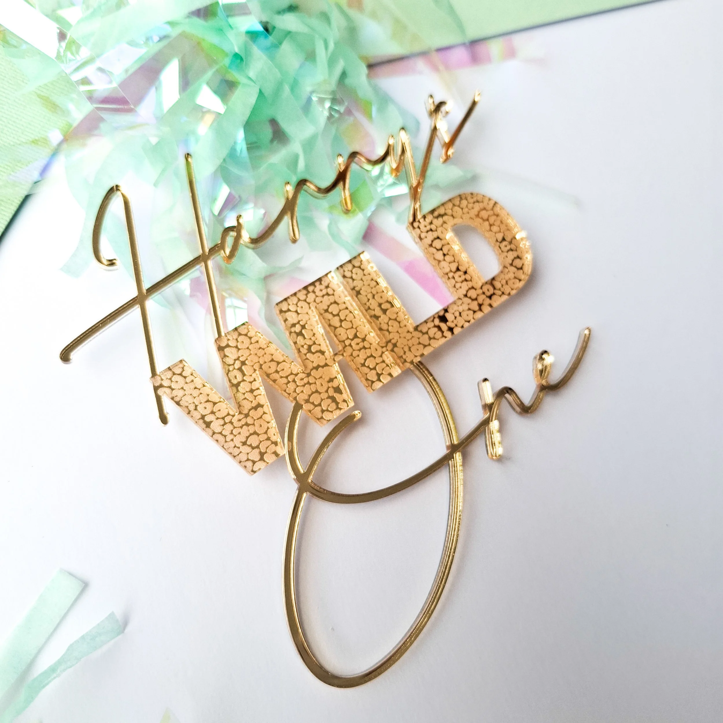 Make your little one’s first birthday cake extra special with our Personalised “Wild One” Acrylic Cake Charm, designed to sit beautifully on the front of your cake. Customised with your child’s name, the design reads “[Name]’s Wild One”, with the word “ONE” featuring an engraved animal print pattern for a fun safari-inspired touch.