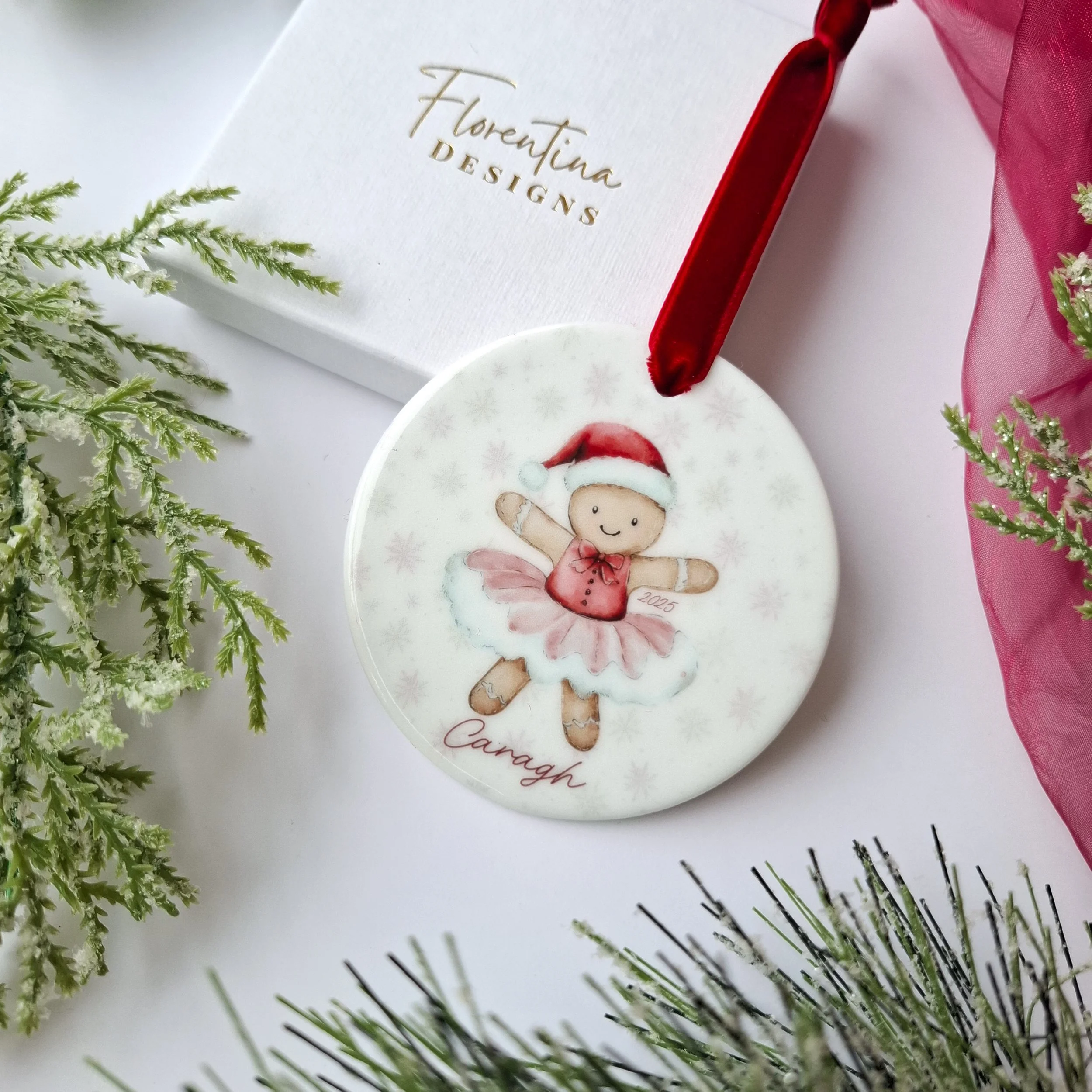Personalised 2025 Gingerbread Girl Ceramic Christmas Decoration