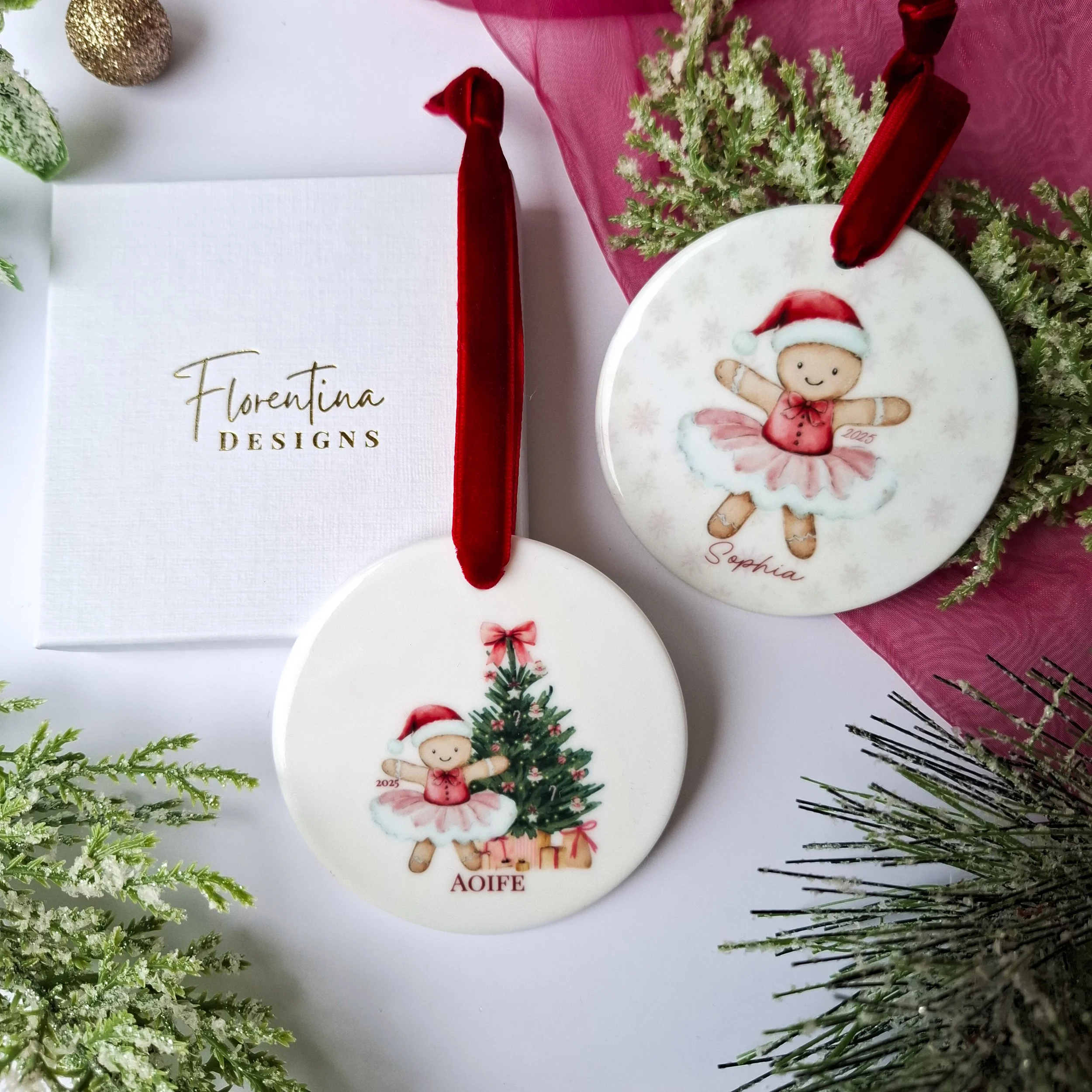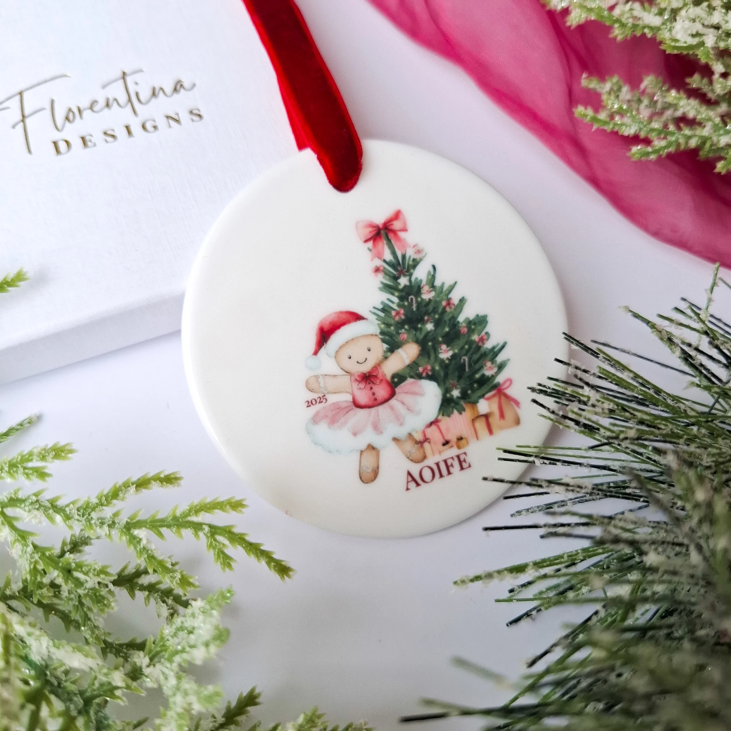 Personalised 2025 Gingerbread Girl & Christmas Tree Ceramic Ornament