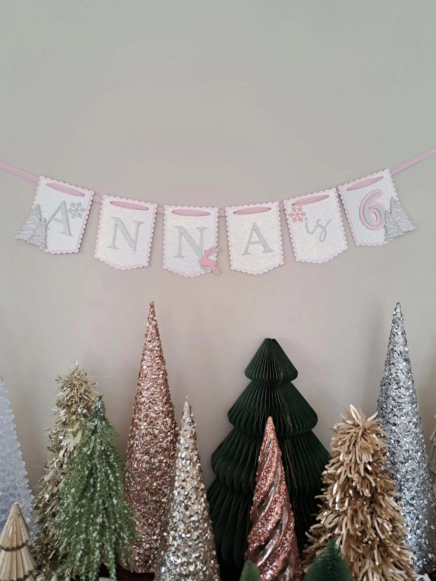 Personalised 2025 Retro Vintage Girl & Reindeer Ceramic Ornament