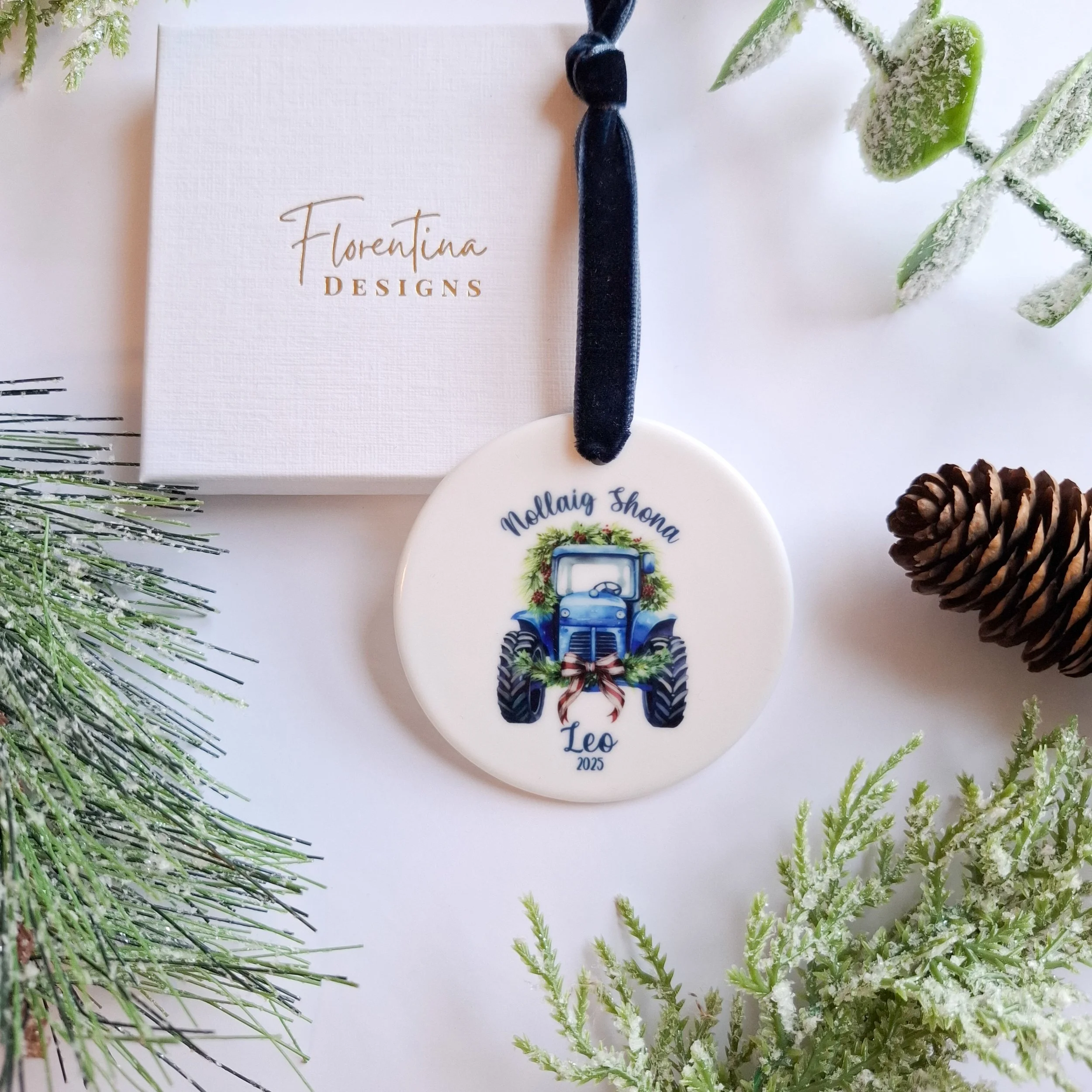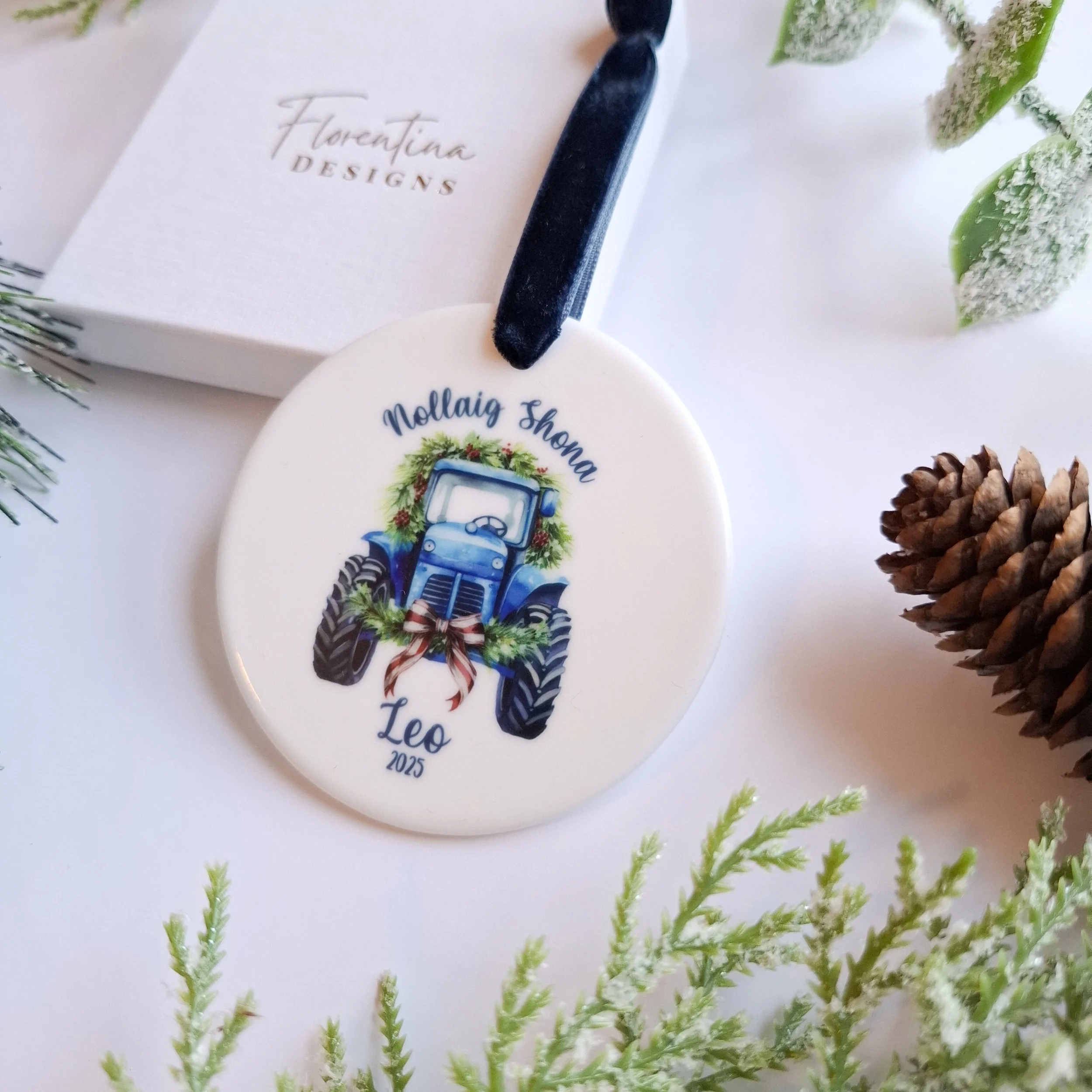 Personalised 2025 Green Vintage Tractor Ceramic Christmas Ornament