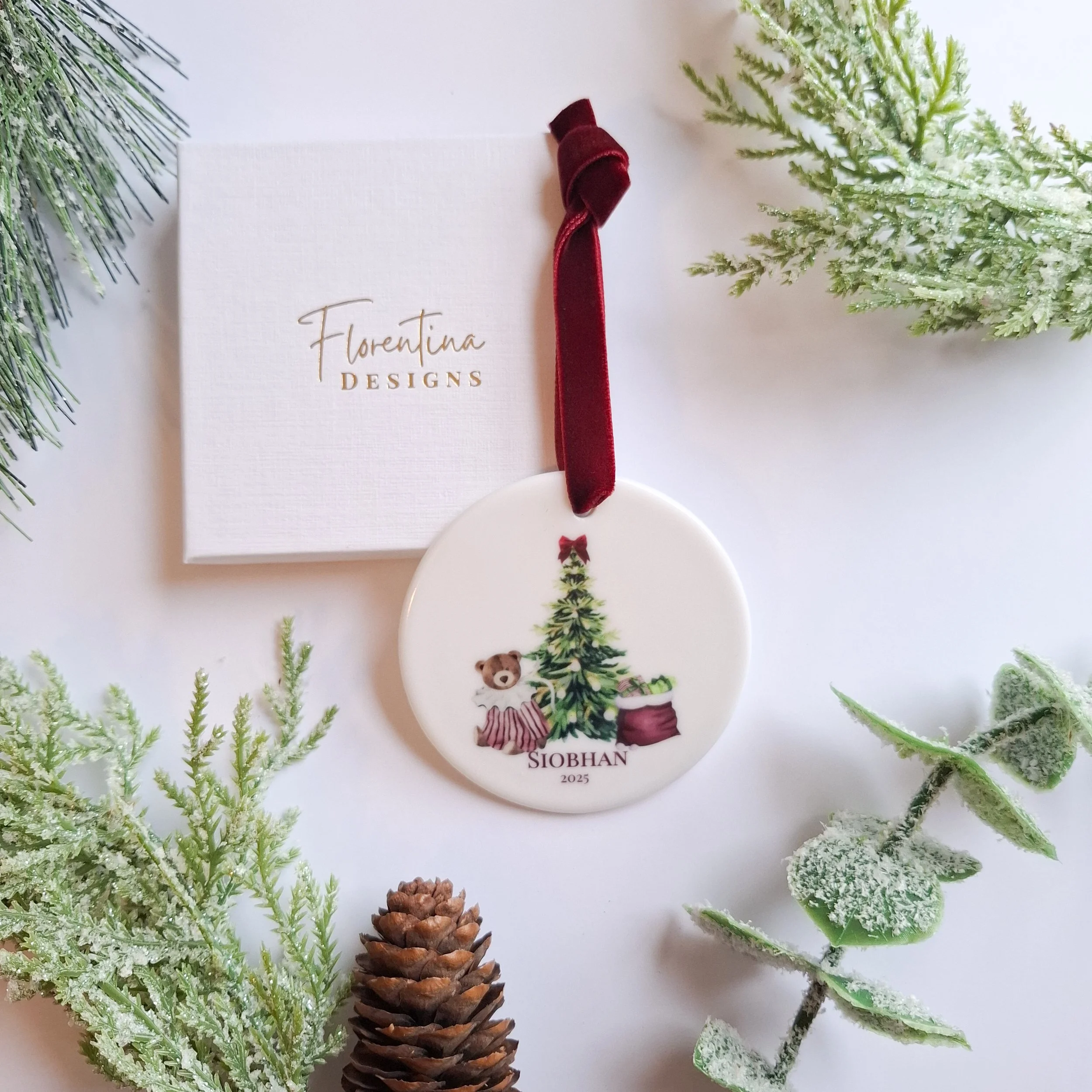 Personalised 2025 Vintage Lady & Tree Ceramic Christmas Ornament | Personalised Christmas Decoration