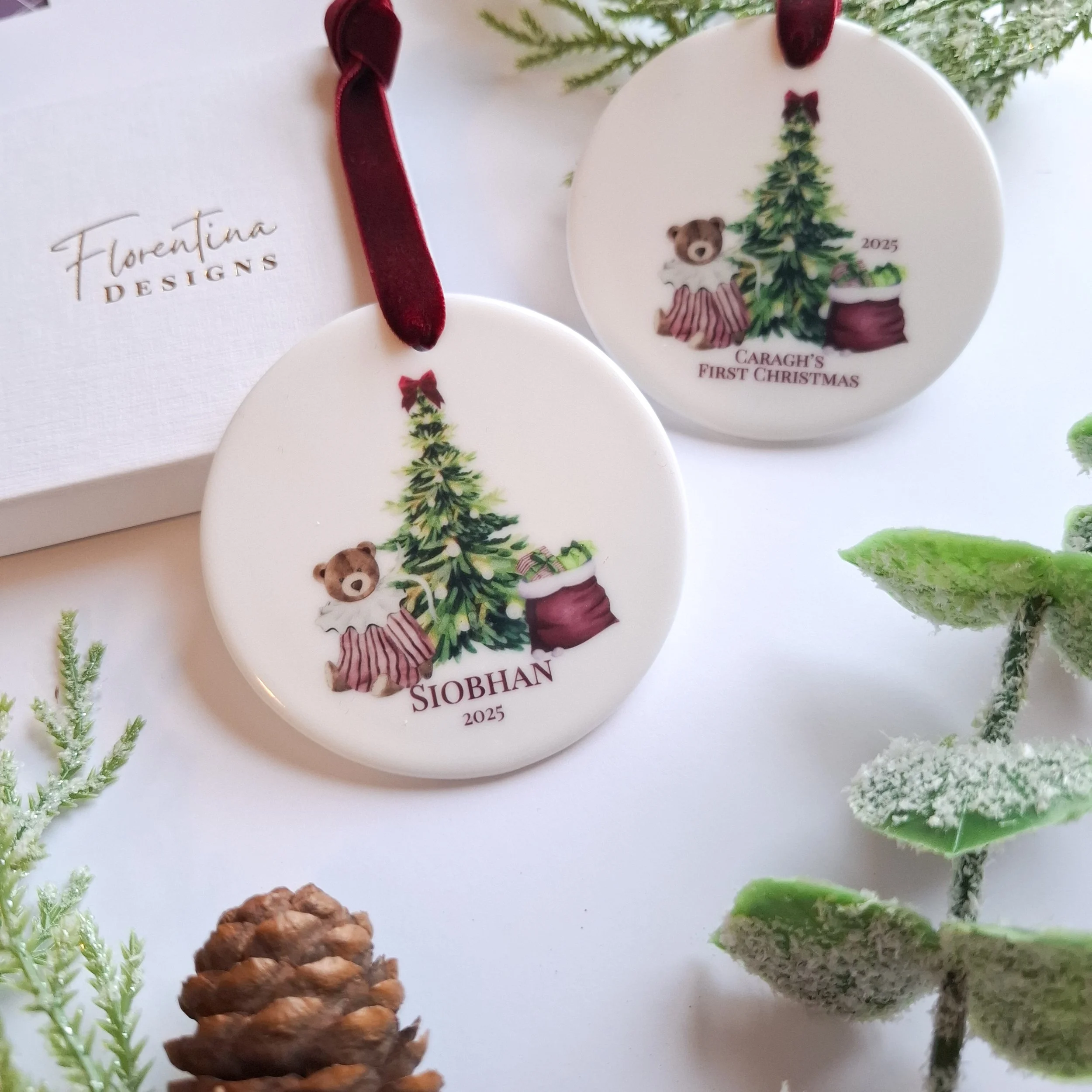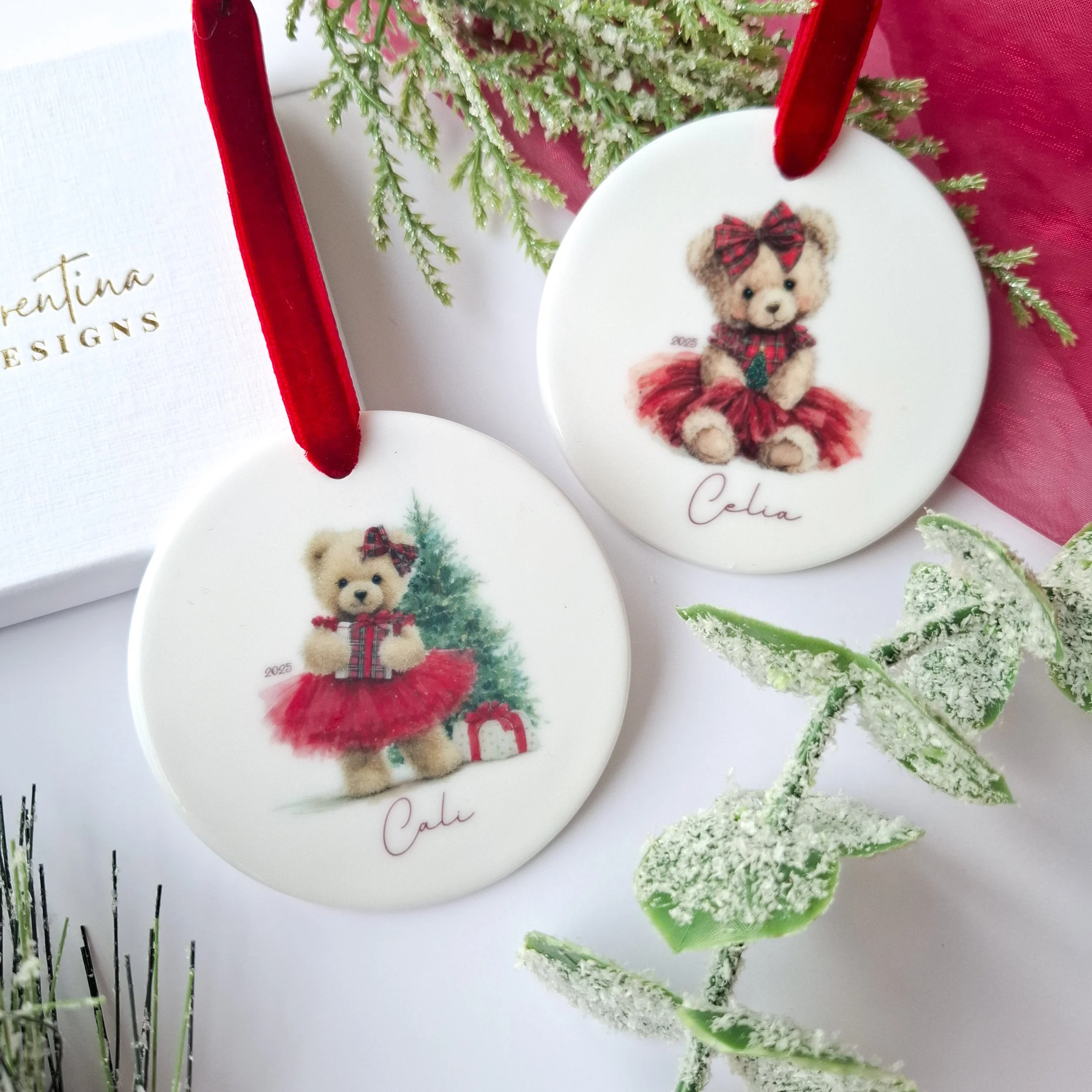 Personalised 2025 Two Teddy Bears Ceramic Christmas Decoration – Teddy Bear (7.2cm)