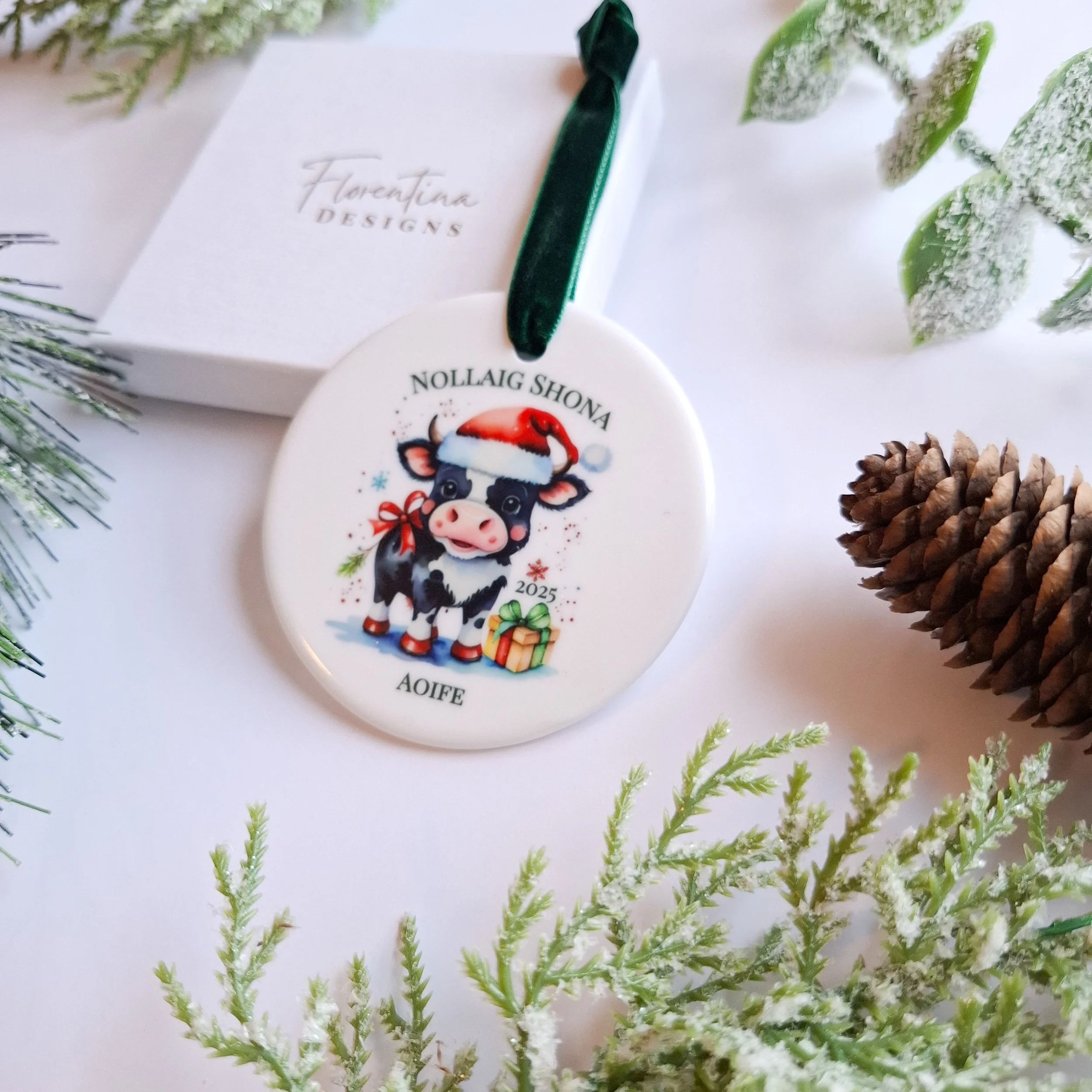 Personalised 2025 'Nollaig Shona' Retro Santa Ceramic Christmas Ornament