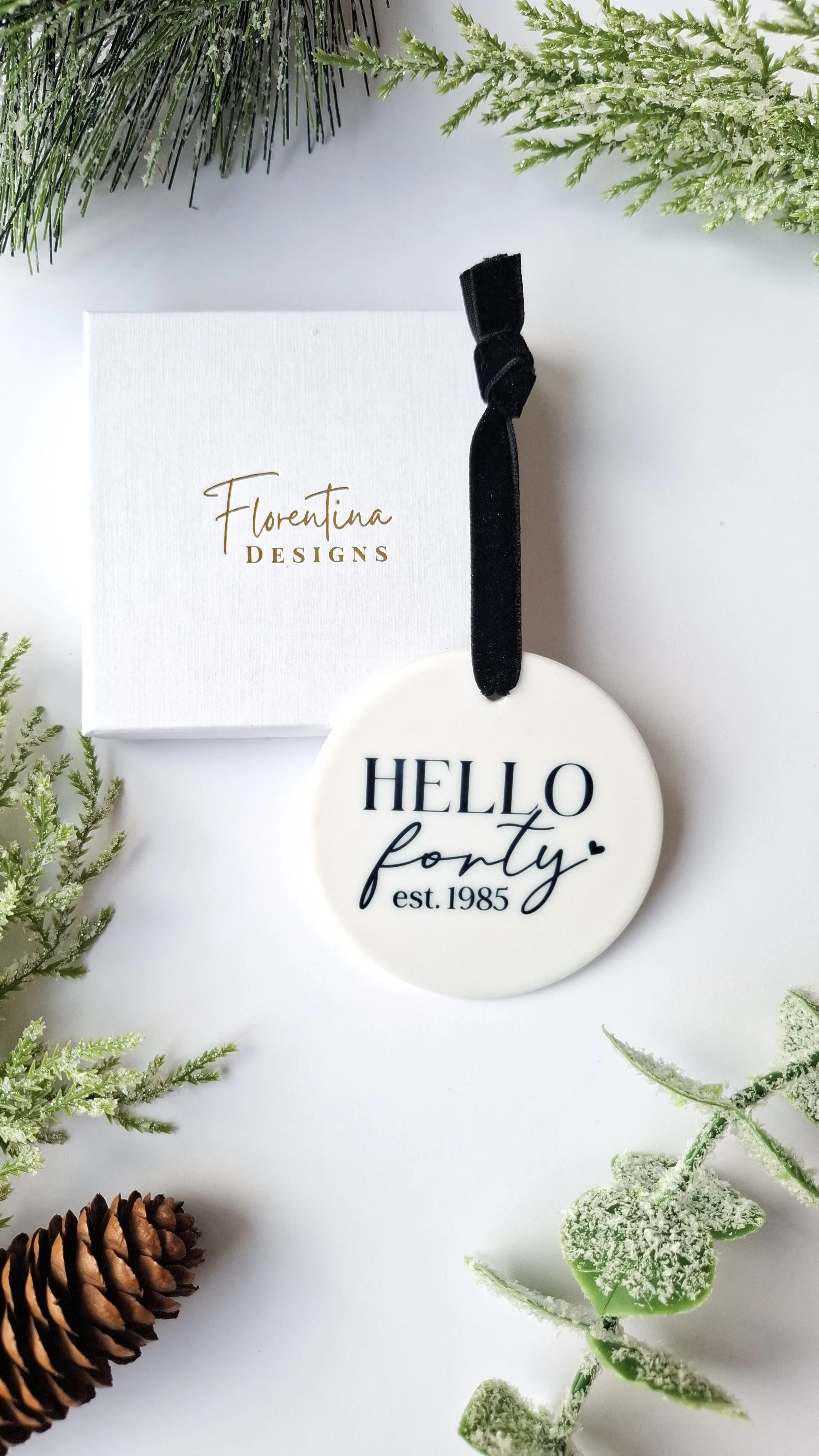 Personalised “Hello Forty” Ceramic Christmas Ornament – 40th Birthday Keepsake 2025