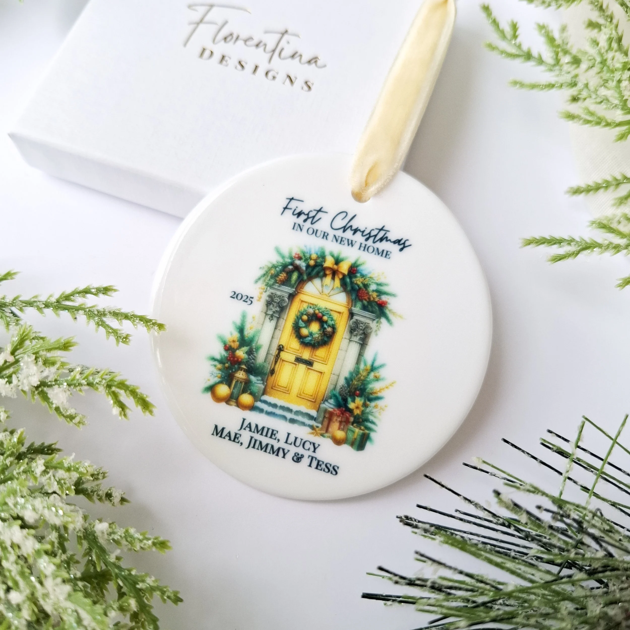 Celebrate your first Christmas in your new home with our beautifully crafted ceramic Christmas ornament, personalised with your family name or individual names.