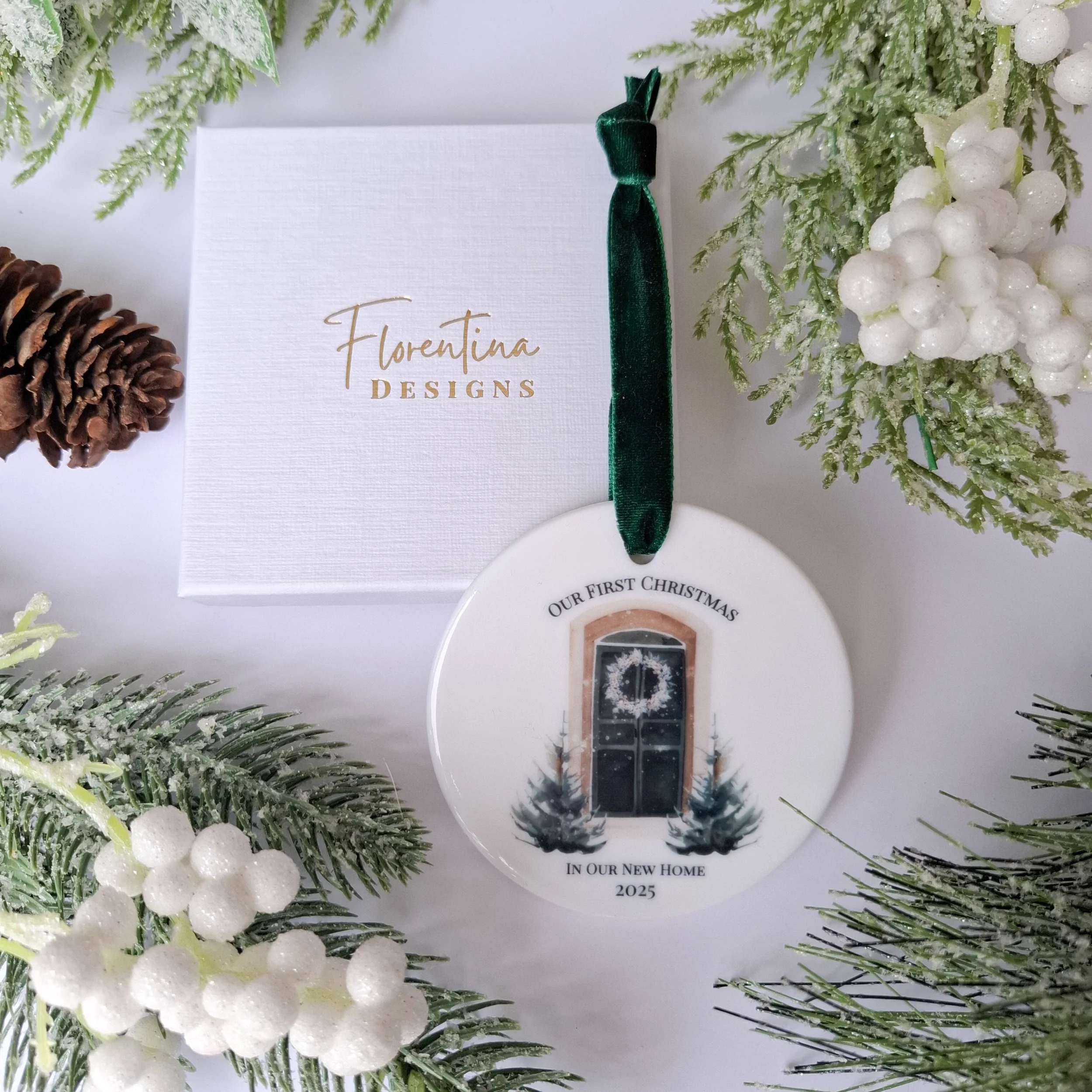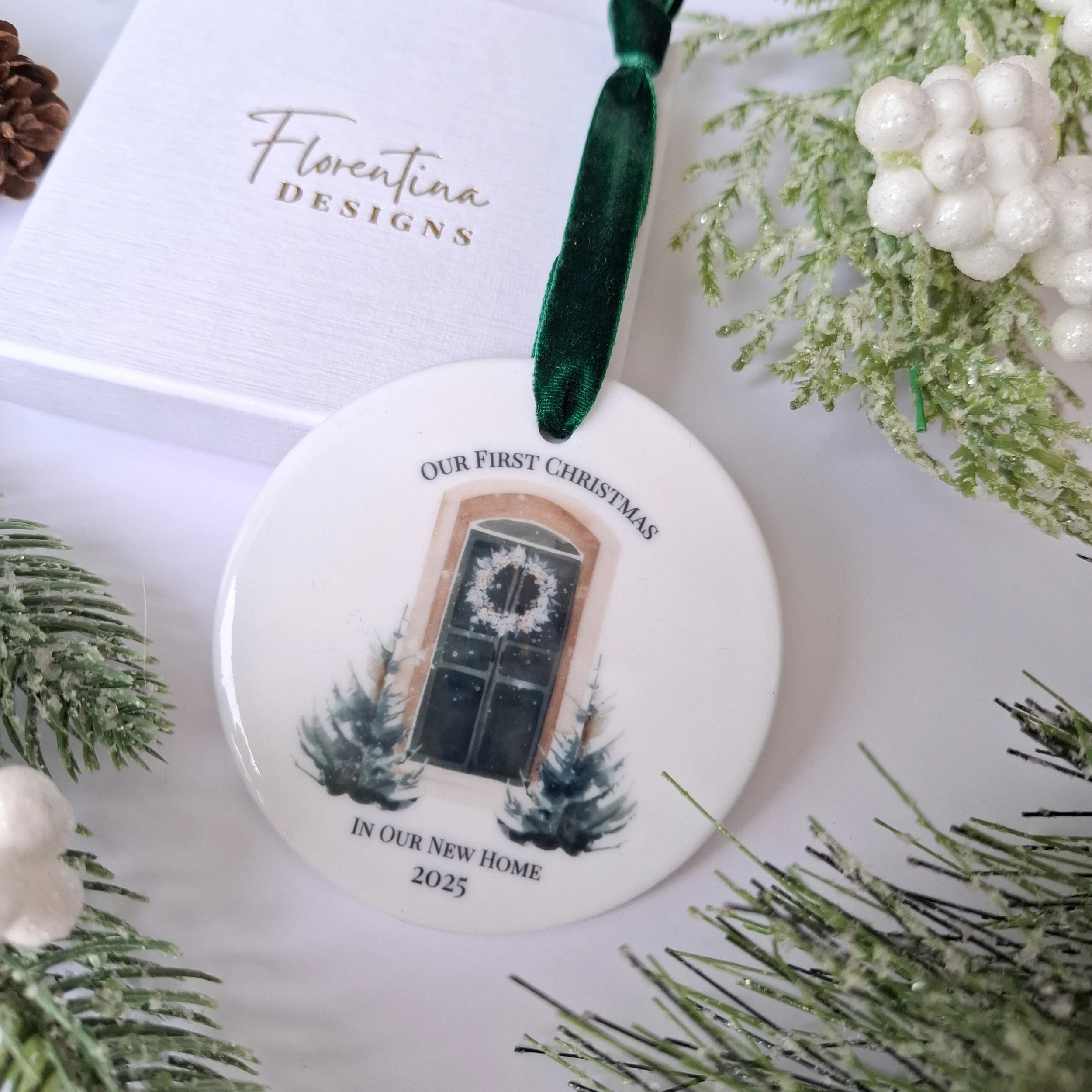 Celebrate your first Christmas in your new home with our beautifully crafted ceramic Christmas ornament, personalised with your family name or individual names.