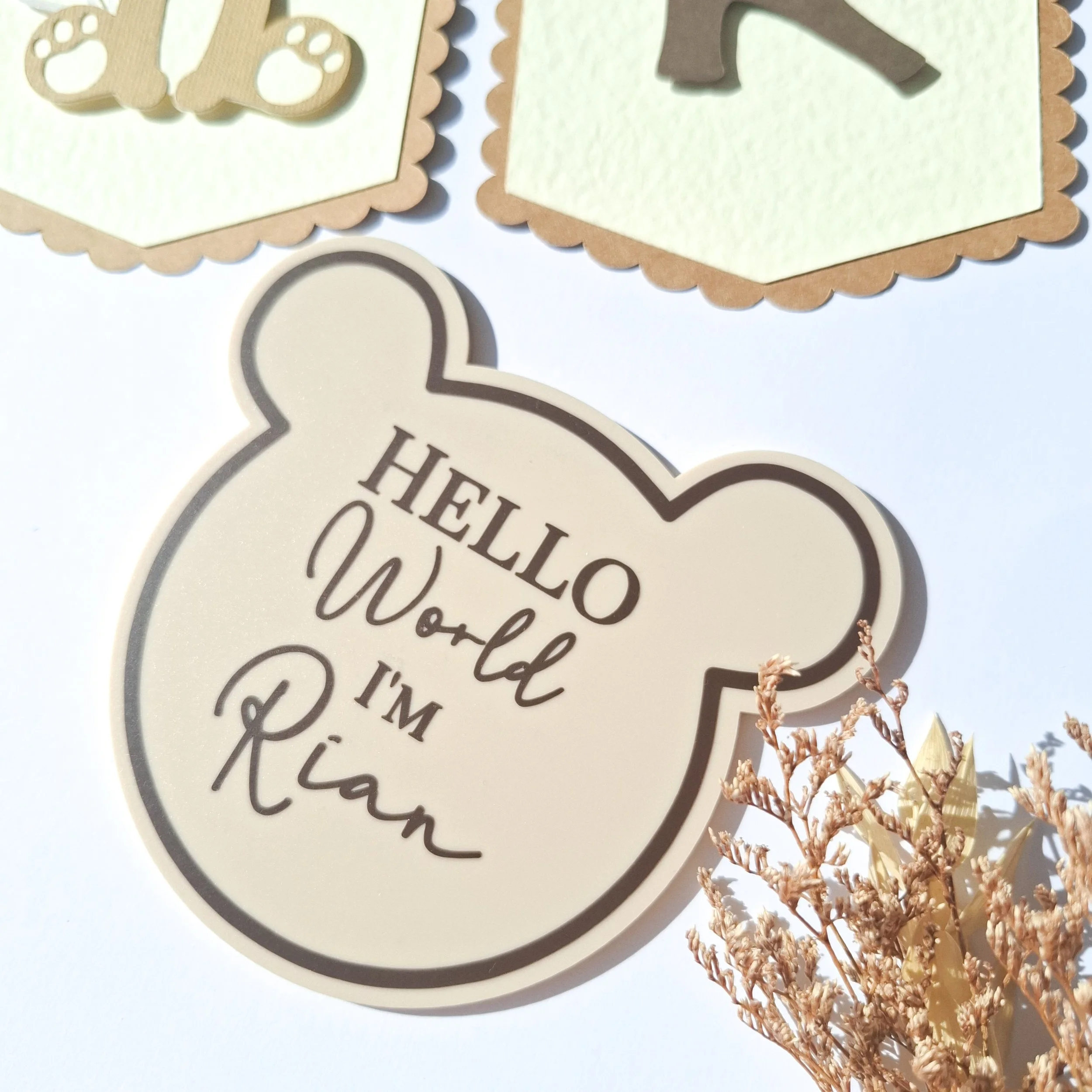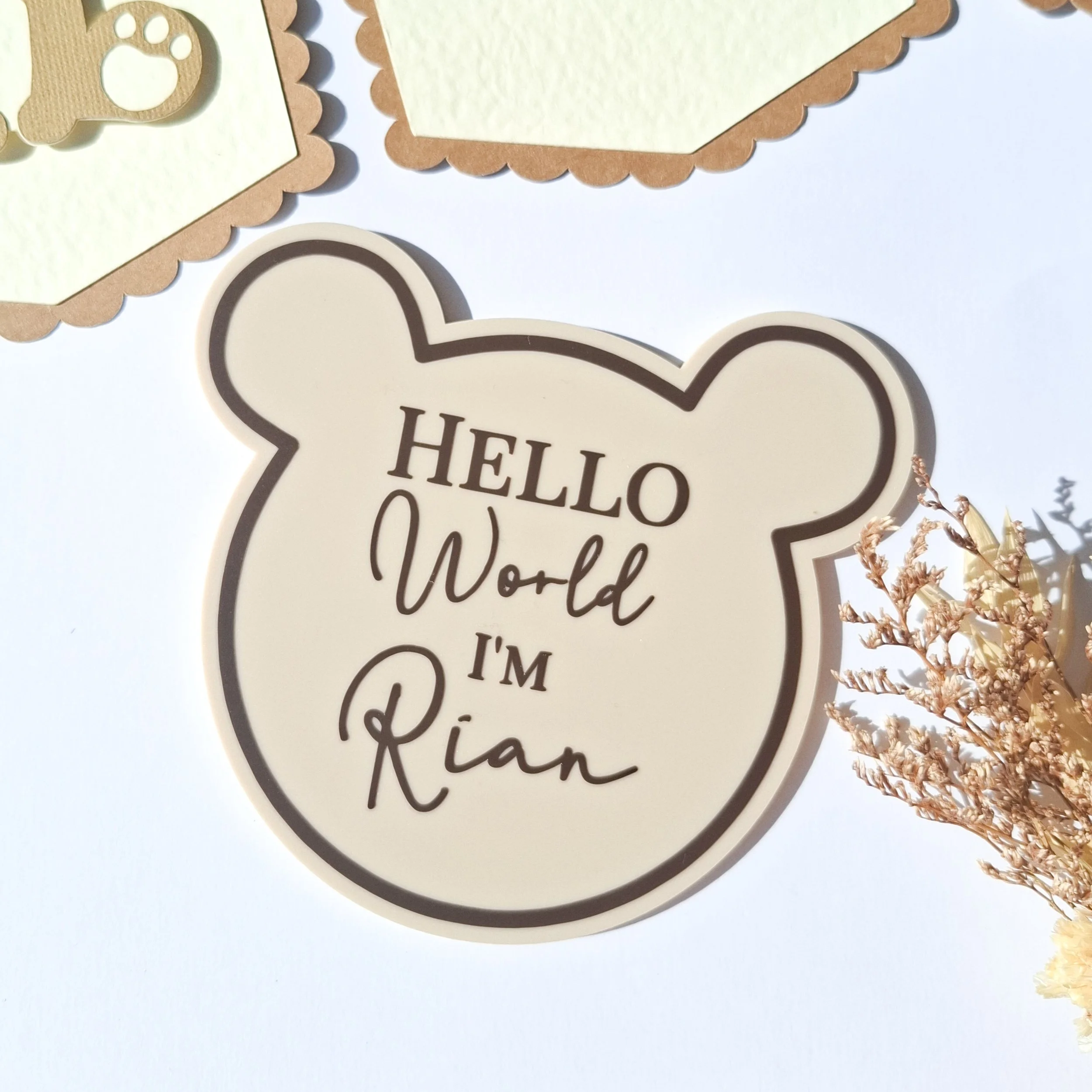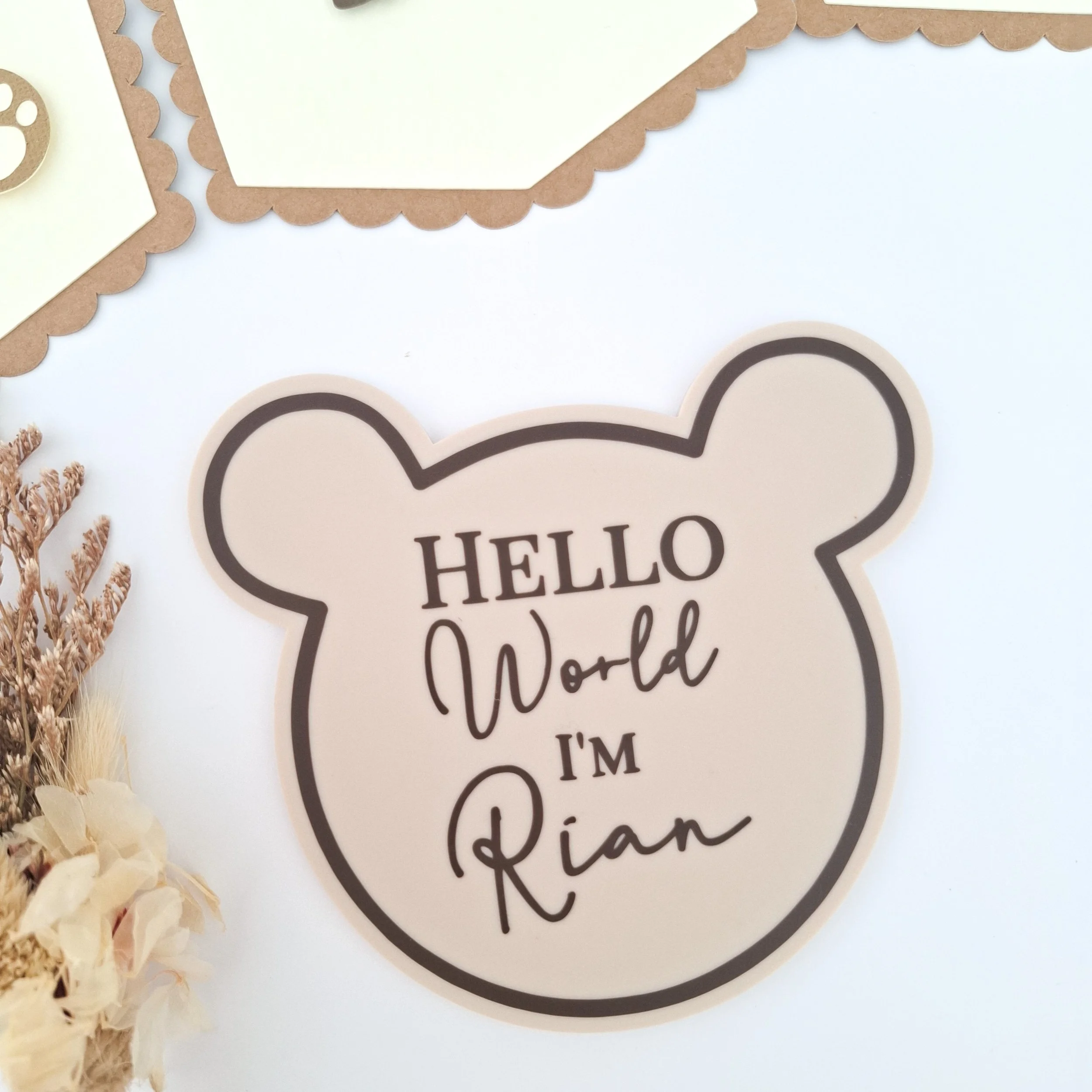 Personalised Hello World Bear Acrylic Baby Sign – Newborn Announcement