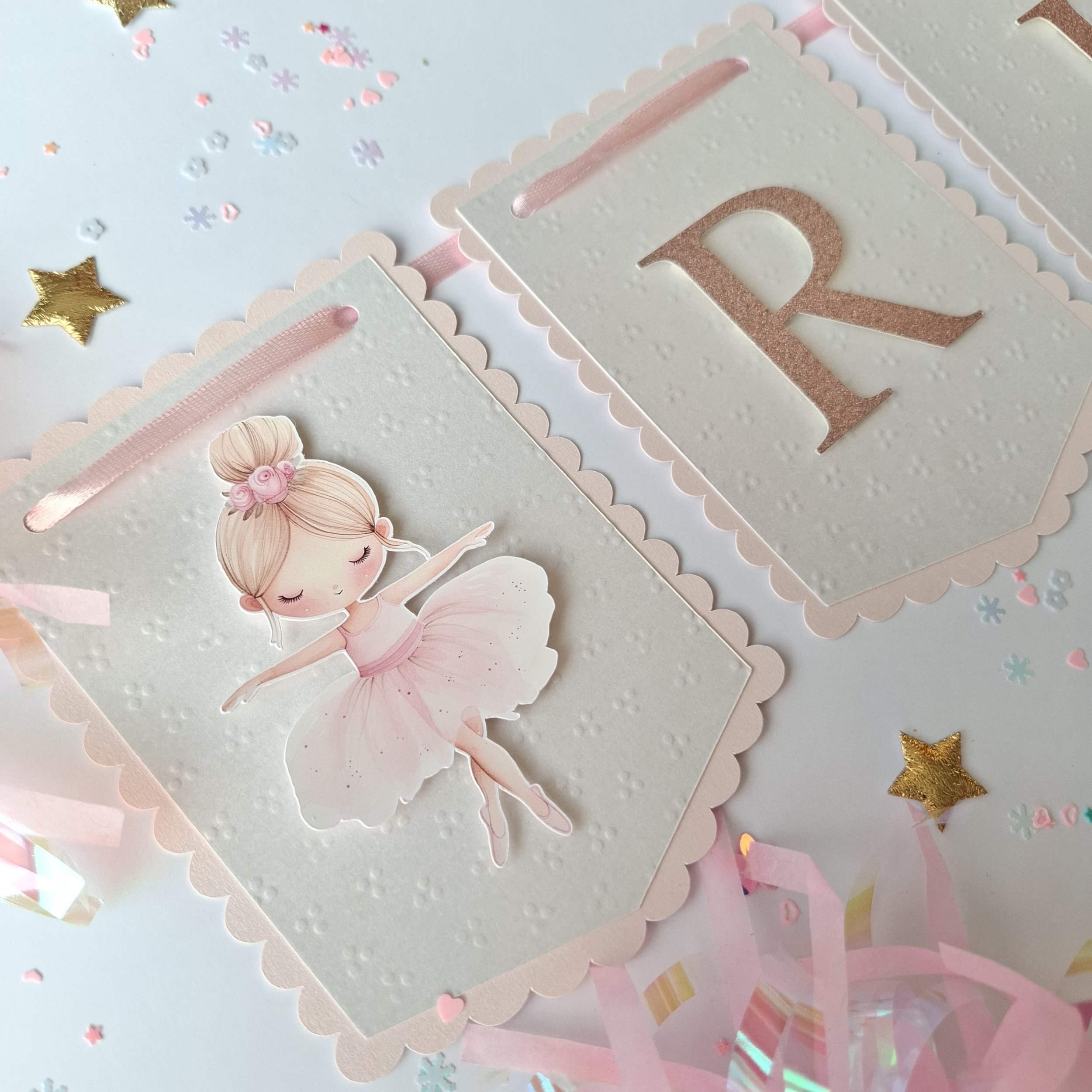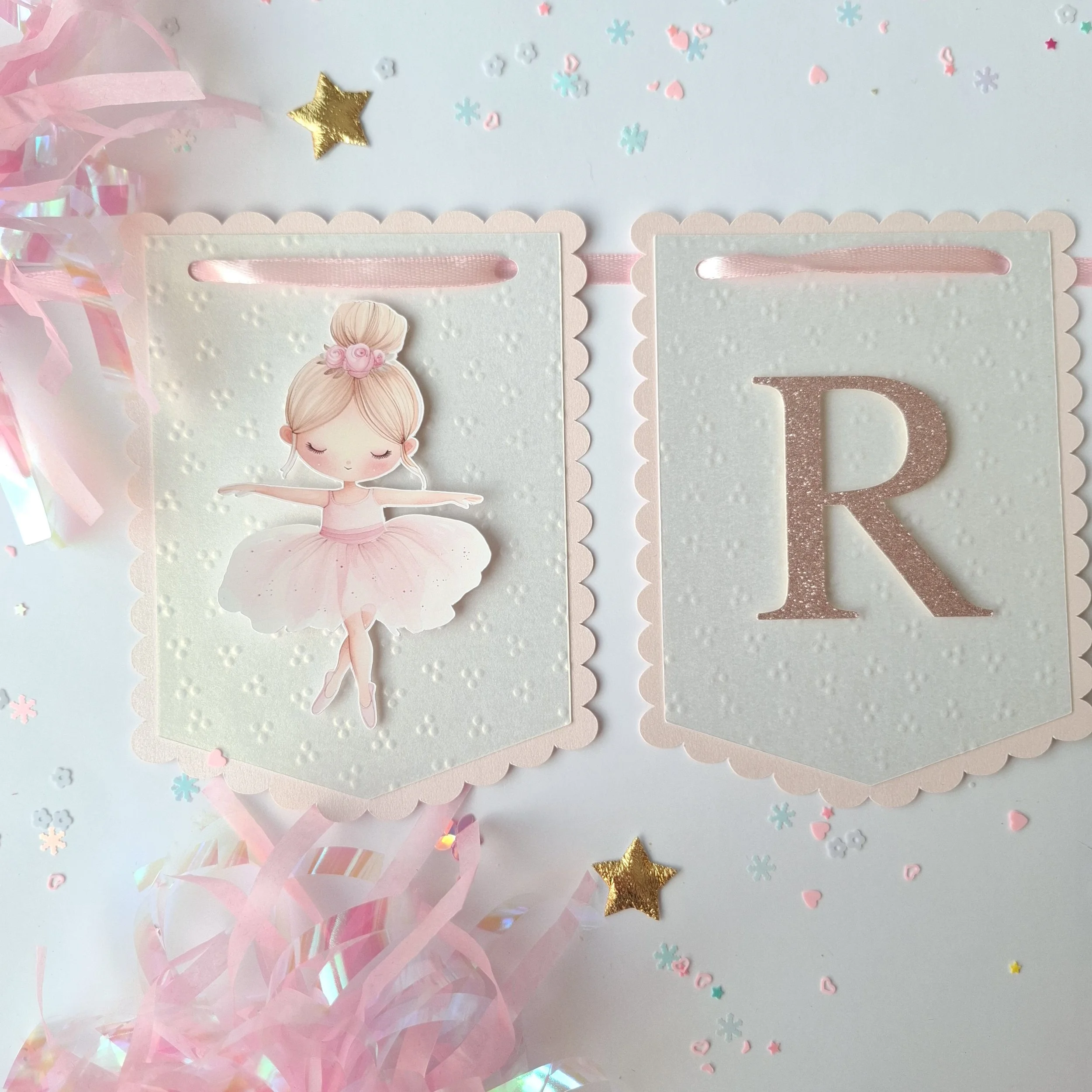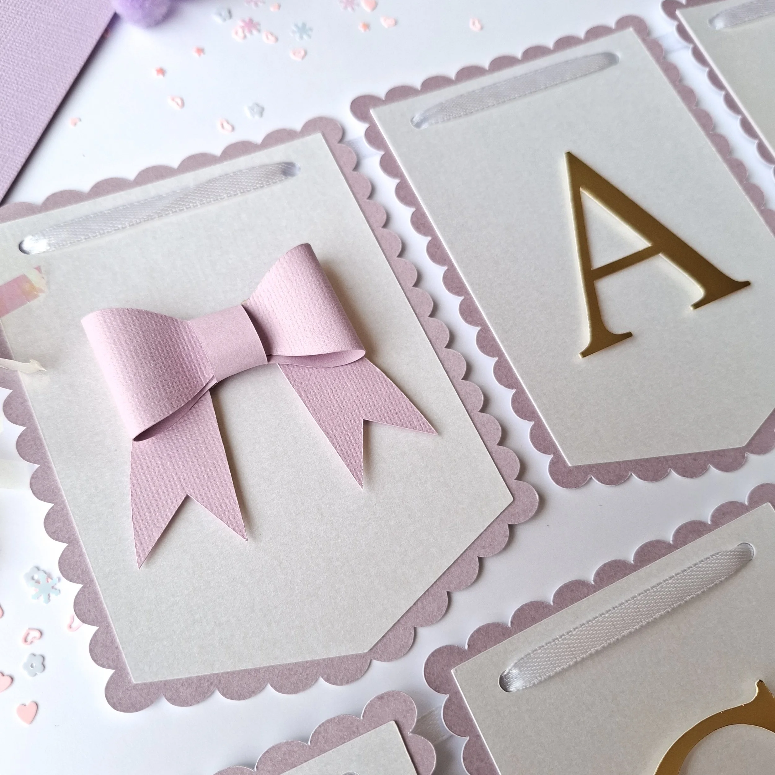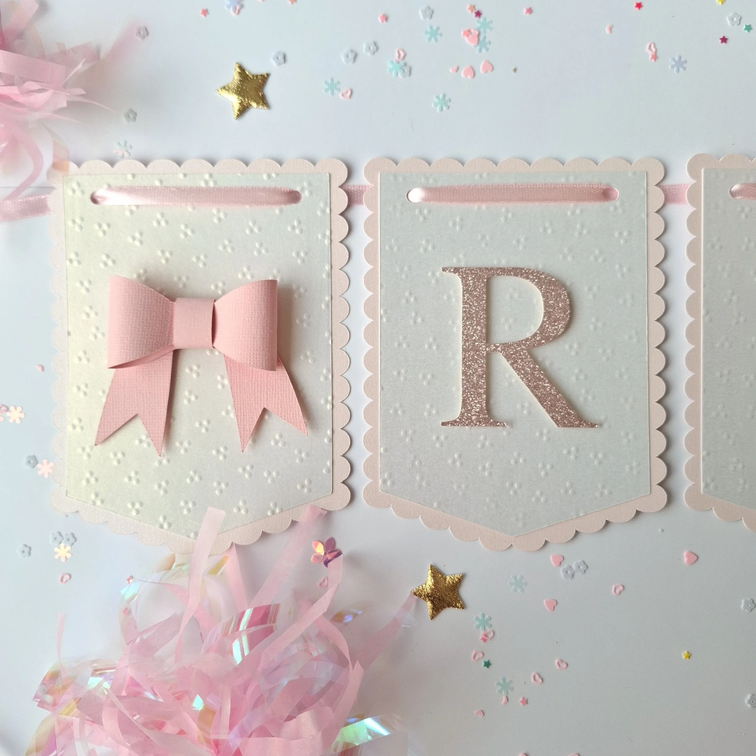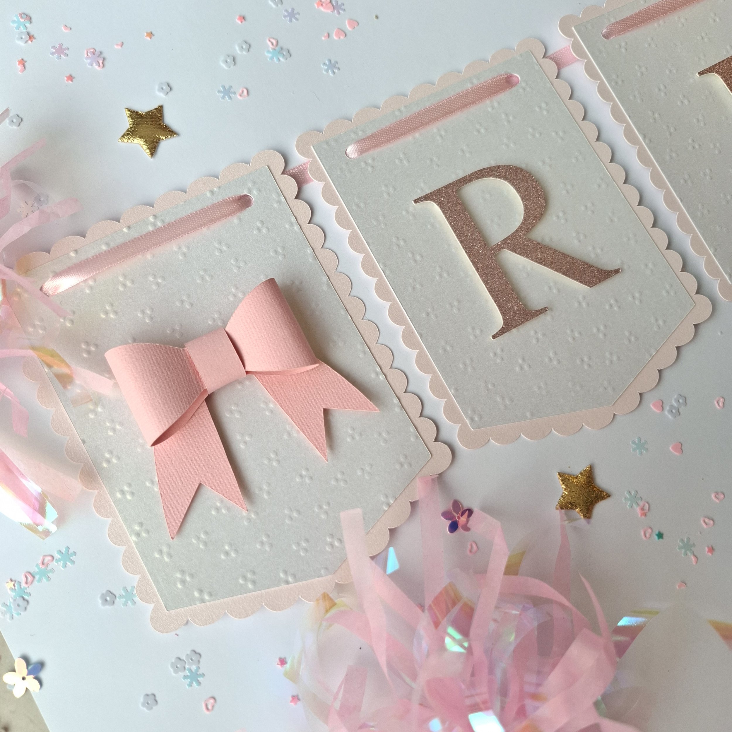 Personalised Pastel Birthday Banner – Scalloped Edge, Name & Age, Embossed or Plain