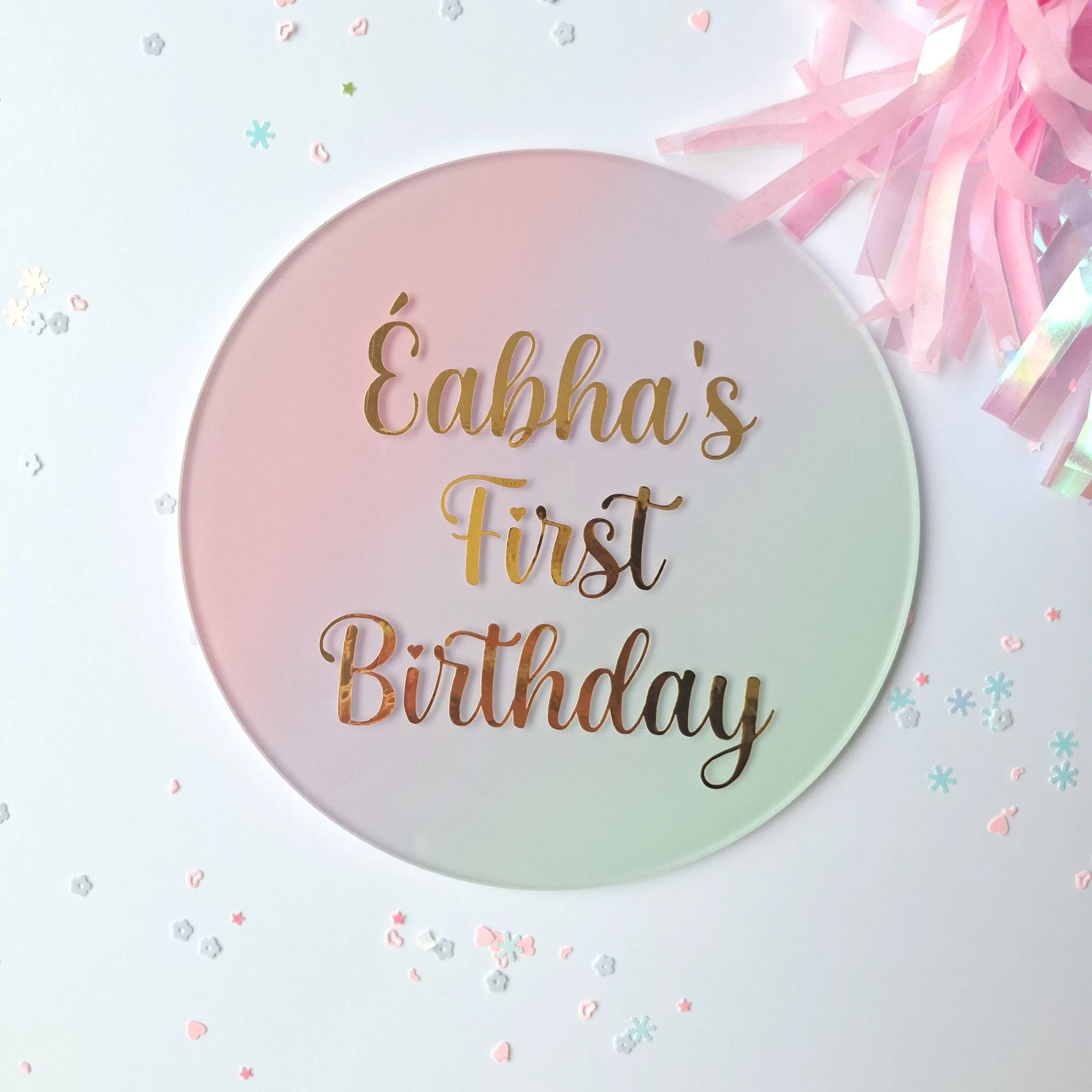 Personalised Confetti Acrylic Arch & Wooden Stand 10cm x 14cm
