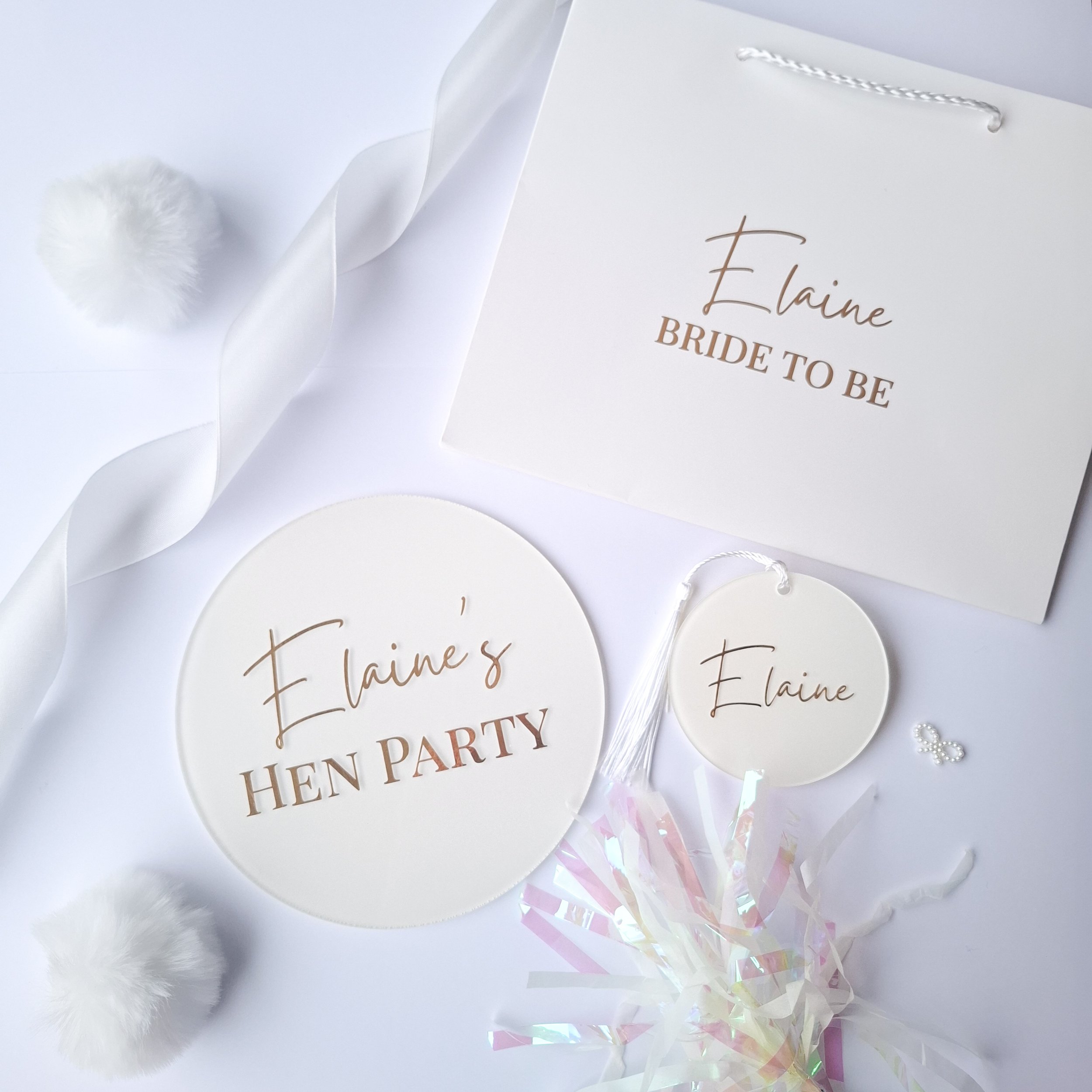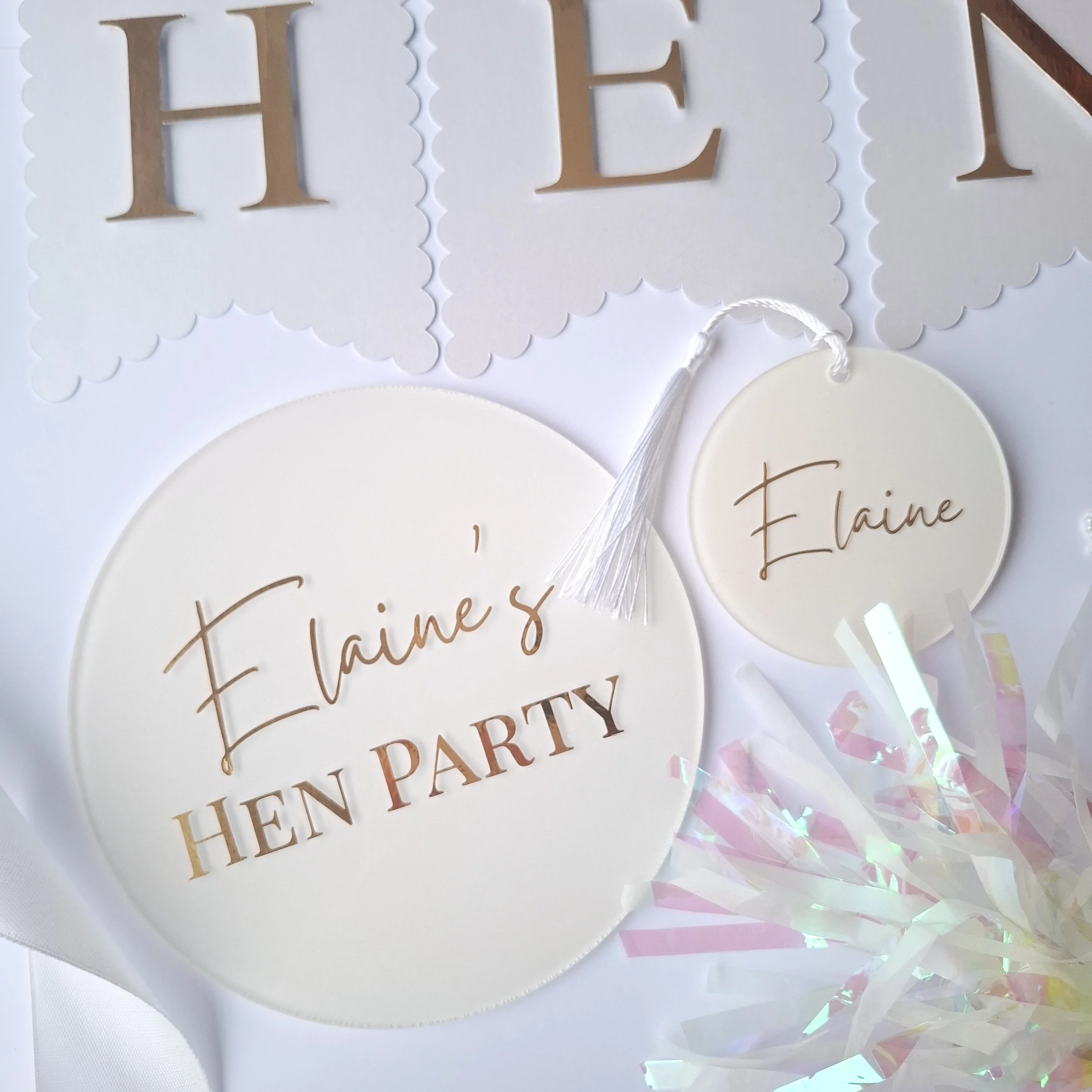 Personalised Hen Party Scalloped Edge Acrylic Disc with Acrylic Bow 14cm