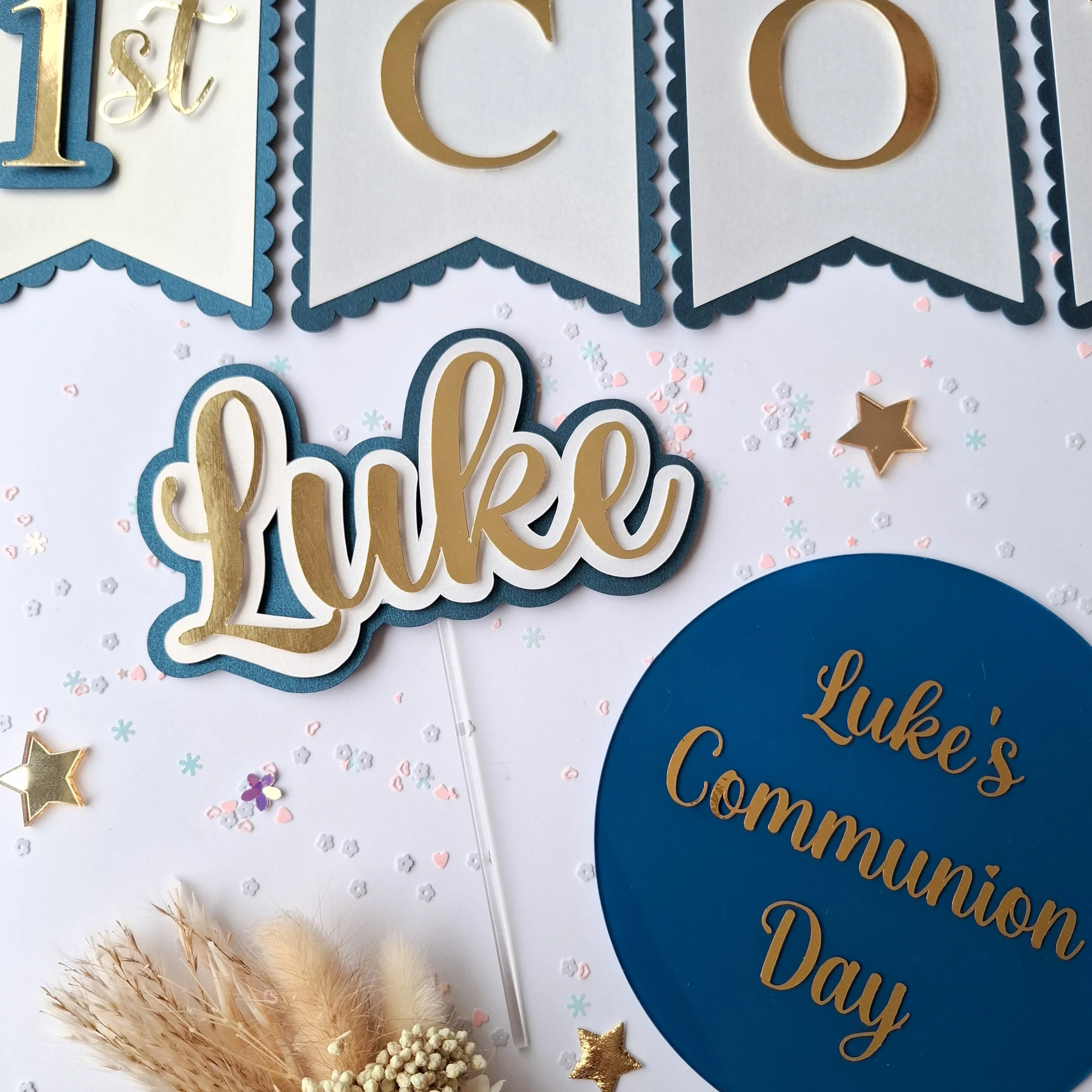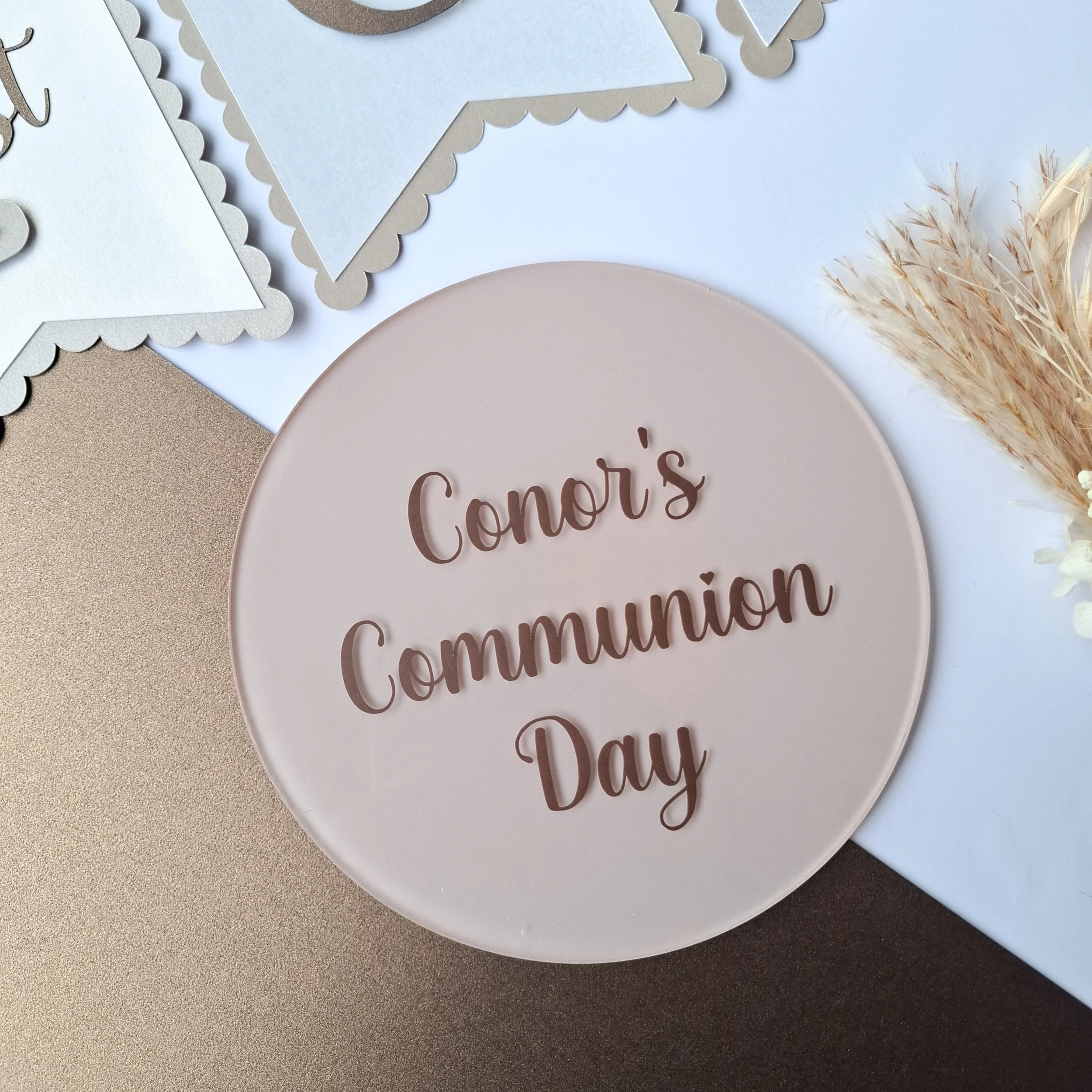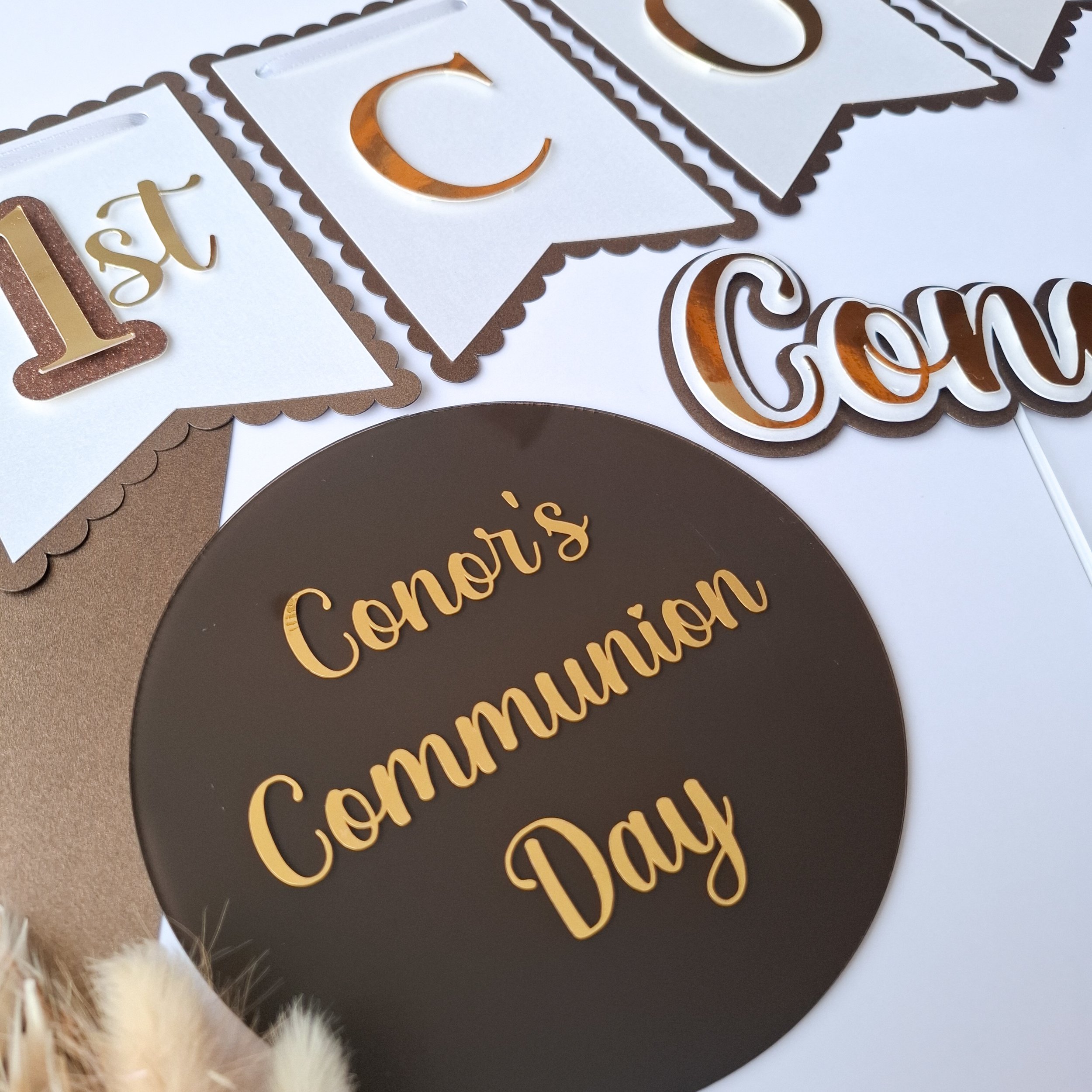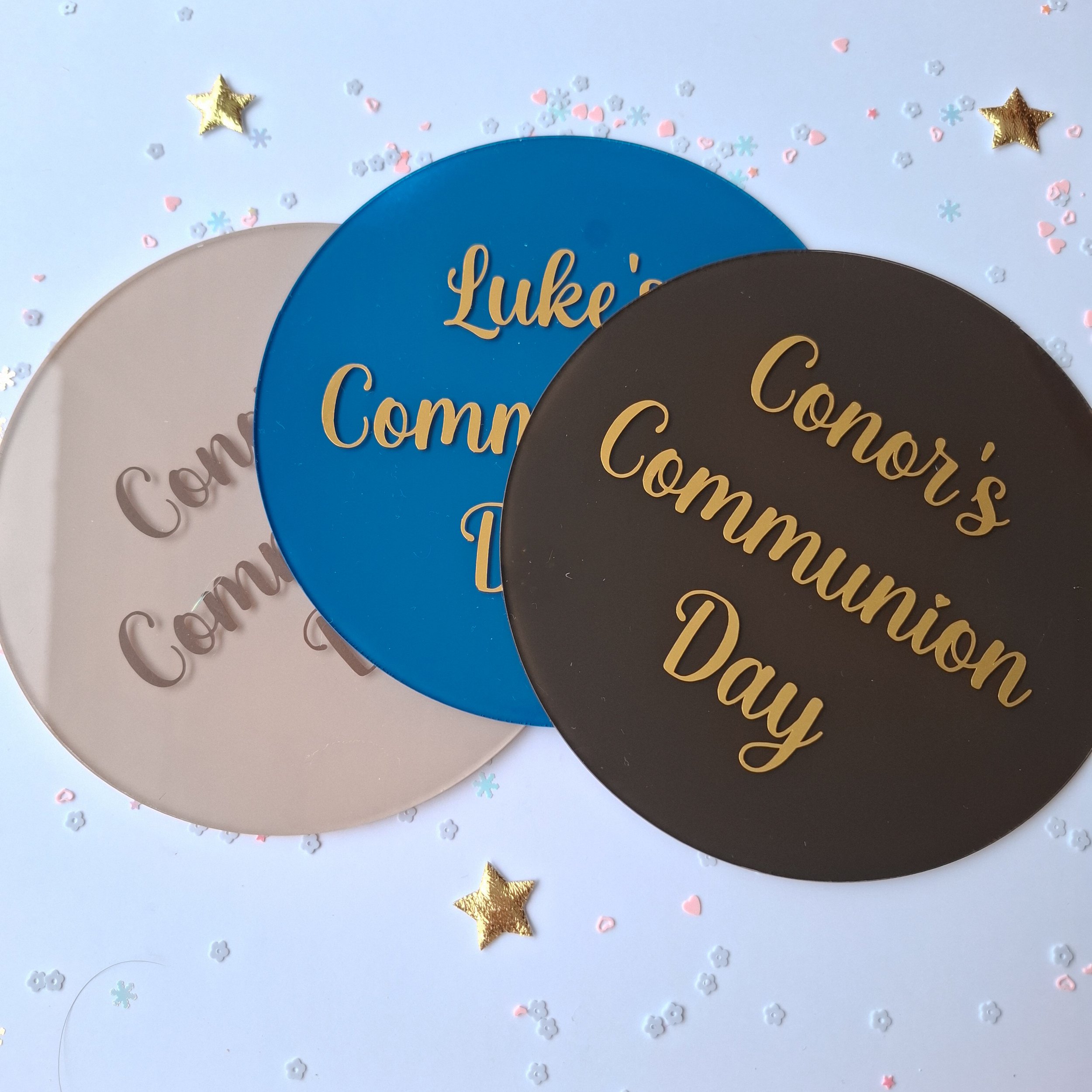 Personalised Double Layer Acrylic Communion Cake Topper - Two fonts