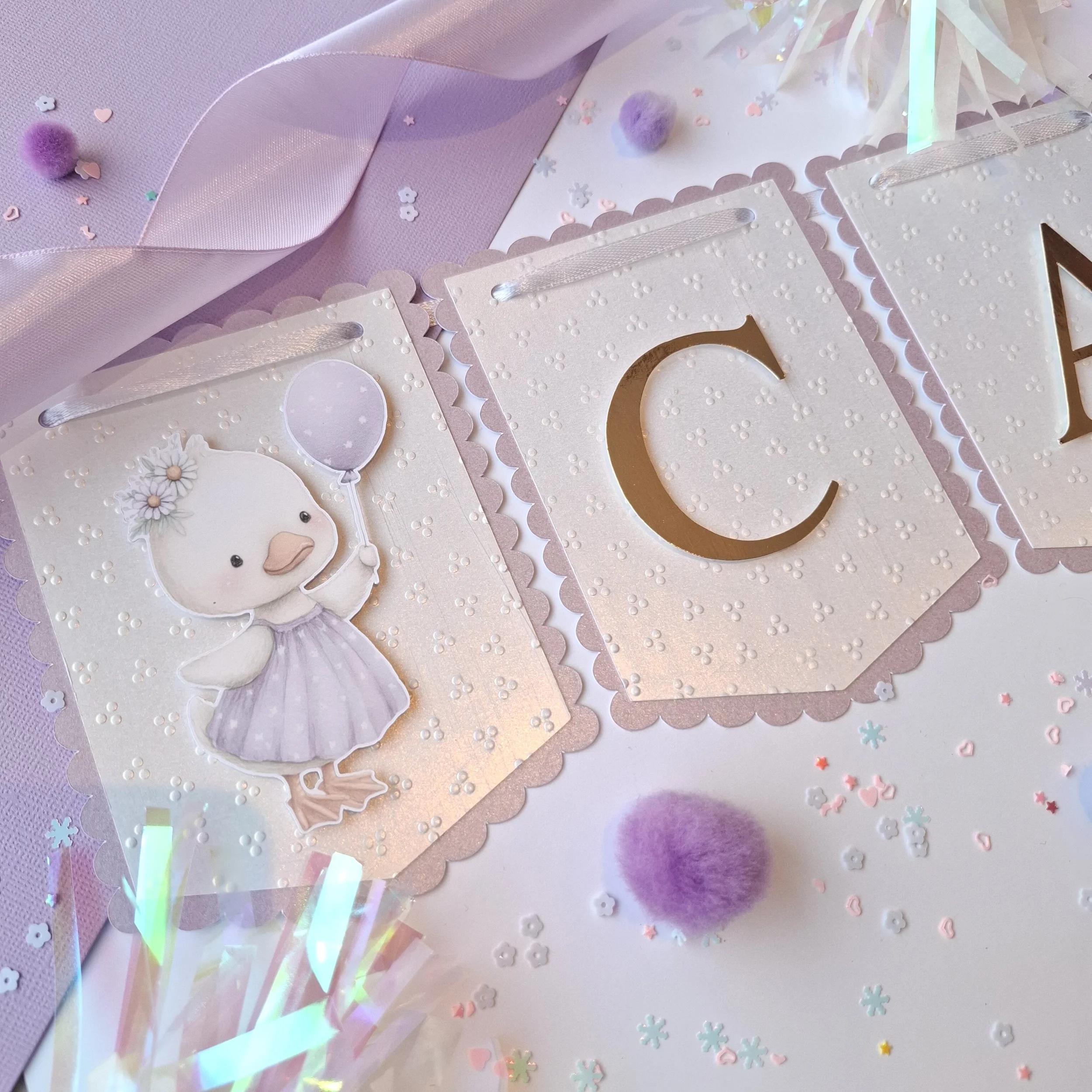 Cute Duck Personalised Birthday Banner –Lilac & White